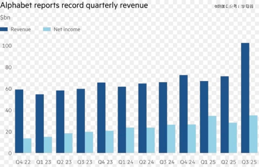 借着AI的东风,Alphabet公司2025年三季度营收1023.5亿美元,是公司史上季度营收首次超越千亿美元。高于此前分析师预期的998.9亿美元,同比增长16%。